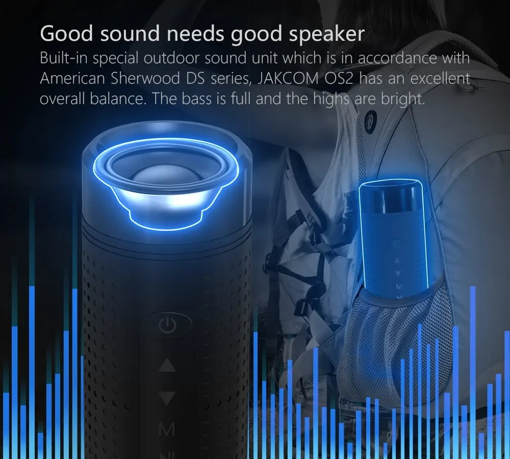 Built-in special outdoor sound unit which is in accordance with American Sherwood DS series,JAKCOM OS2 has an excellent overall balance. The bass is full and the highs are bright.